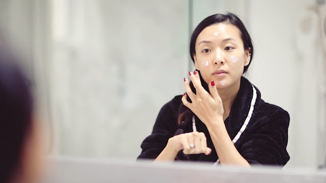 I’m starting off with the COVERGIRL + Olay Simply Ageless Anti-Aging Foundation Primer which has a lovely creamy texture and applying it to a clean, bare face. This primer not only helps foundation to last longer and look better, but it also includes anti-aging ingredients that help condition skin over time which is always a blessing for my sleep-deprived self!
